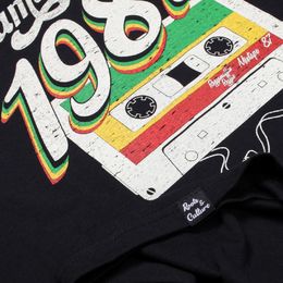Vzor v retro štýle s nápisom 1987 s kazetou v rasta farbách a ceruzkou nielen pre pamätníkov tejto doby.