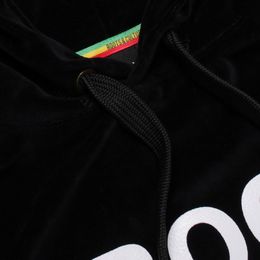 V bokz je vsadené pruhové lemovanie v rasta farbách.