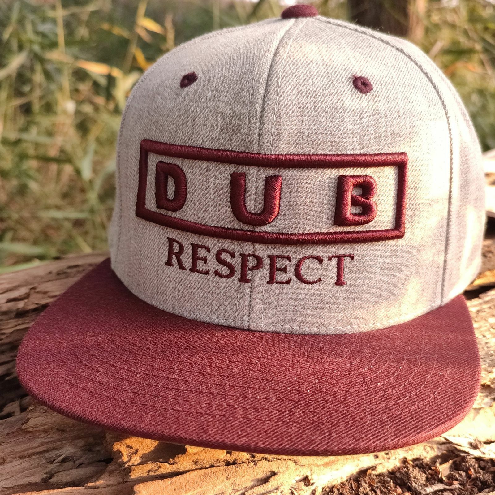 Táto moderná verzia klasickej snapback čiapky je ideálna pre fanúšikov sound systemovej scény, ktorí hľadajú štýlový doplnok. Čiapka v šedom melíre s bordovými akcentmi a plochým šiltom prináša jedinečný vzhľad, doplnený 3D výšivkou „DUB Respect“ na prednej strane. Spodná časť šiltu je v zelenej farbe, čo vytvára výrazný kontrast, zatiaľ čo bordové zapínanie typu snapback zaisťuje dokonalé prispôsobenie.