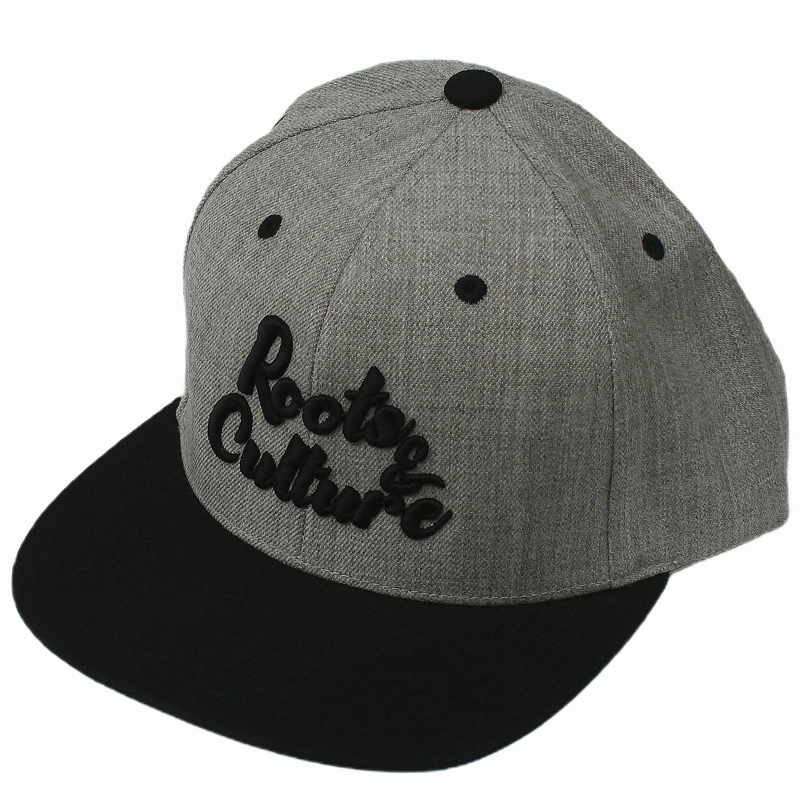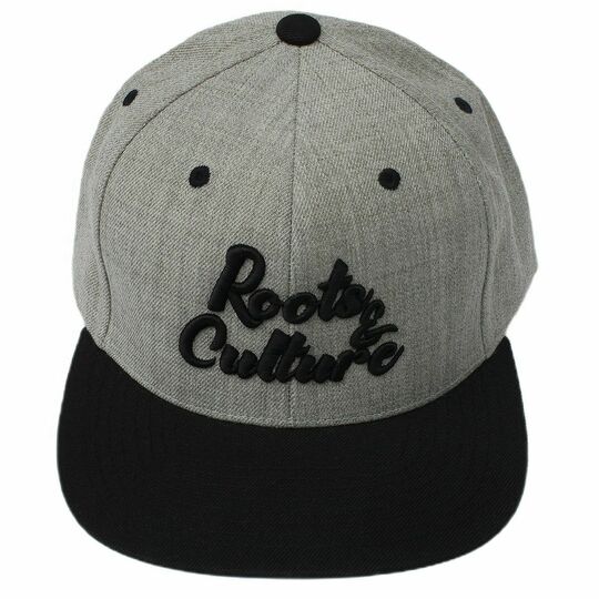 Na prednej strane sa nachádza čierna 3D výšivka s nápisom „Roots & Culture“, ktorá prináša výrazný kontrast k šedému melíru. Plochý šilt má zo spodnej strany zelený odtieň, zatiaľ čo nastaviteľné bordové zapínanie snapback umožňuje jednoduché prispôsobenie veľkosti.