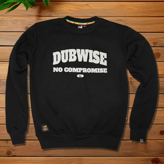 Na prednej strane nájdete originálnu grafiku „Dubwise No Compromise“, ktorá zdôrazňuje jedinečný štýl. Mikina je doplnená detailmi, ako je tkaný štítok „Roots & Culture“ na ľavom rukáve, štítok Roots Rockin Raspect na spodnej časti a bočný štítok v trikolóre. Švy v oblasti ramien sú zosilnené páskou vo farbách Rasta.