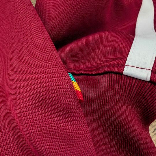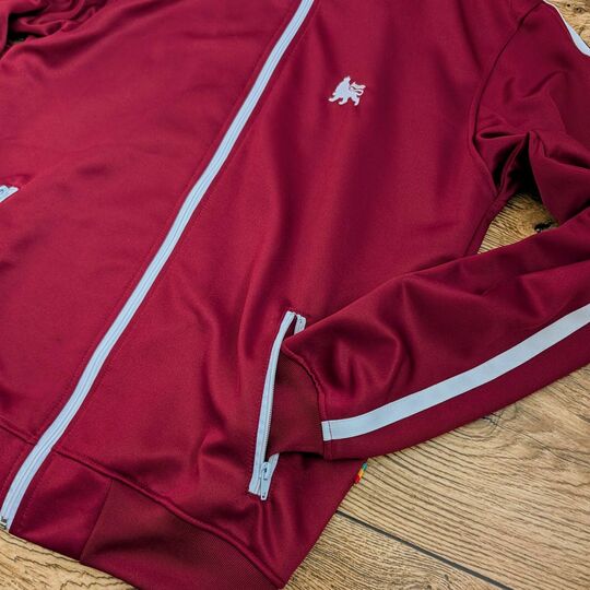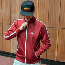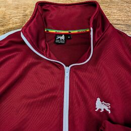 Štýlová mikina inšpirovaná klasickými teplákovými bundami z 80. a 90. rokov prináša nostalgiu aj energiu moderného streetwearu v duchu roots a reggae. Kombinácia hlbokej bordovej farby s bielymi pruhmi a zipsami vytvára výrazný vintage vzhľad s charakterom.