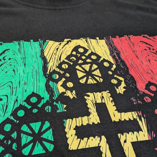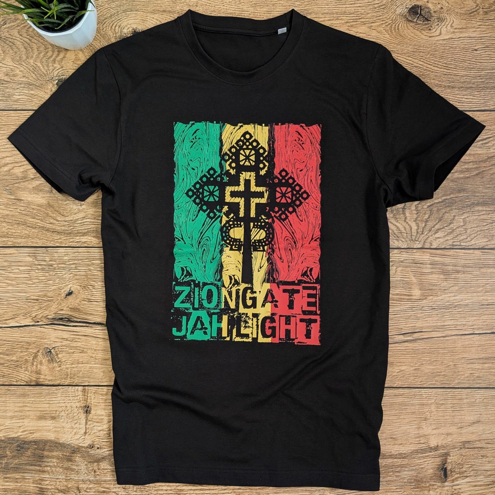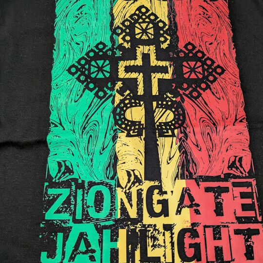 Duży etiopski krzyż osadzony w barwach tego kraju, w kolorach nieodłącznie już kojarzonych z kulturą Roots Reggae i ruchem Rastafari. Całość dopełnia hasło Zion Gate.