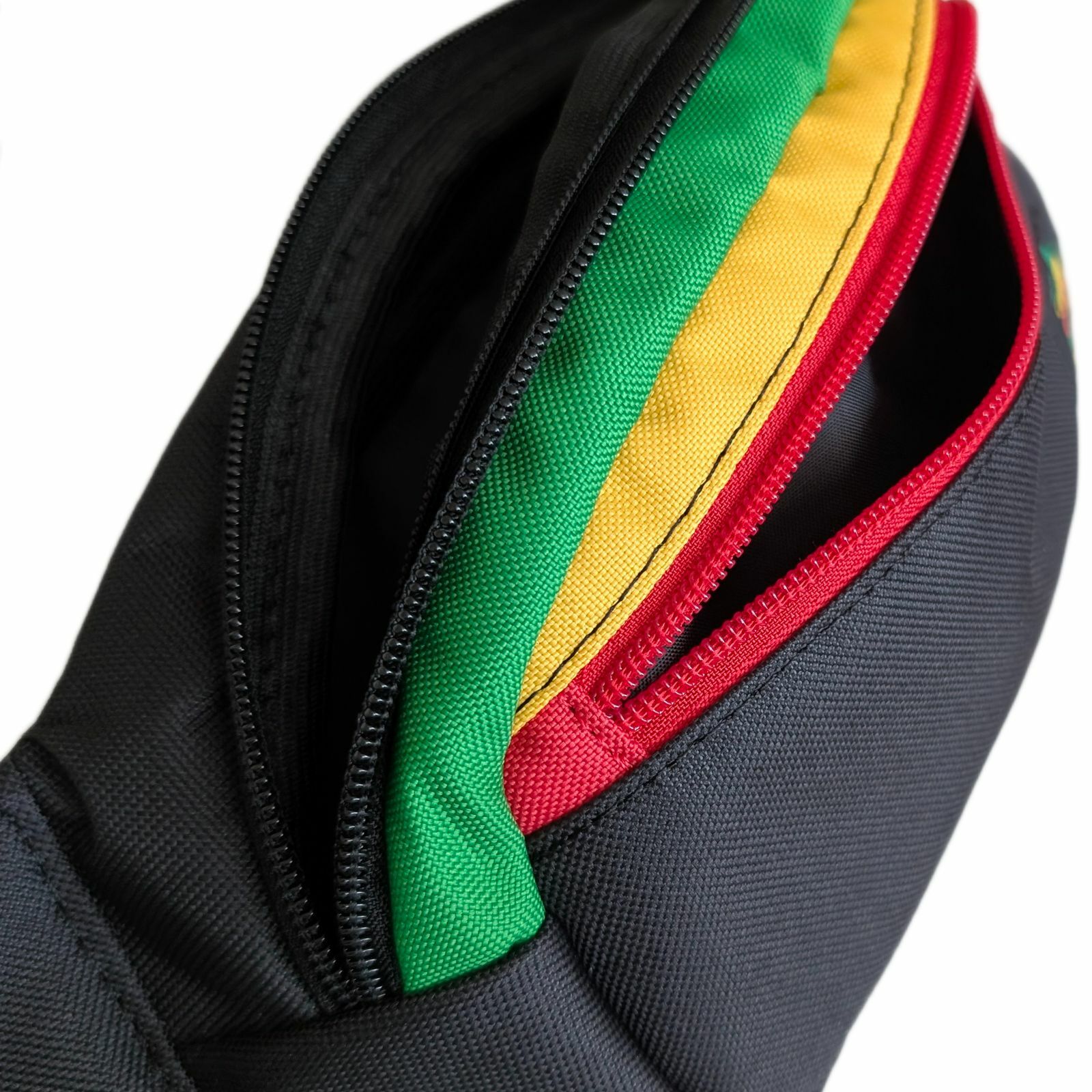 Štýlová a odolná ľadvinka v duchu roots reggae – ideálna na festivaly, koncerty aj bežné nosenie.