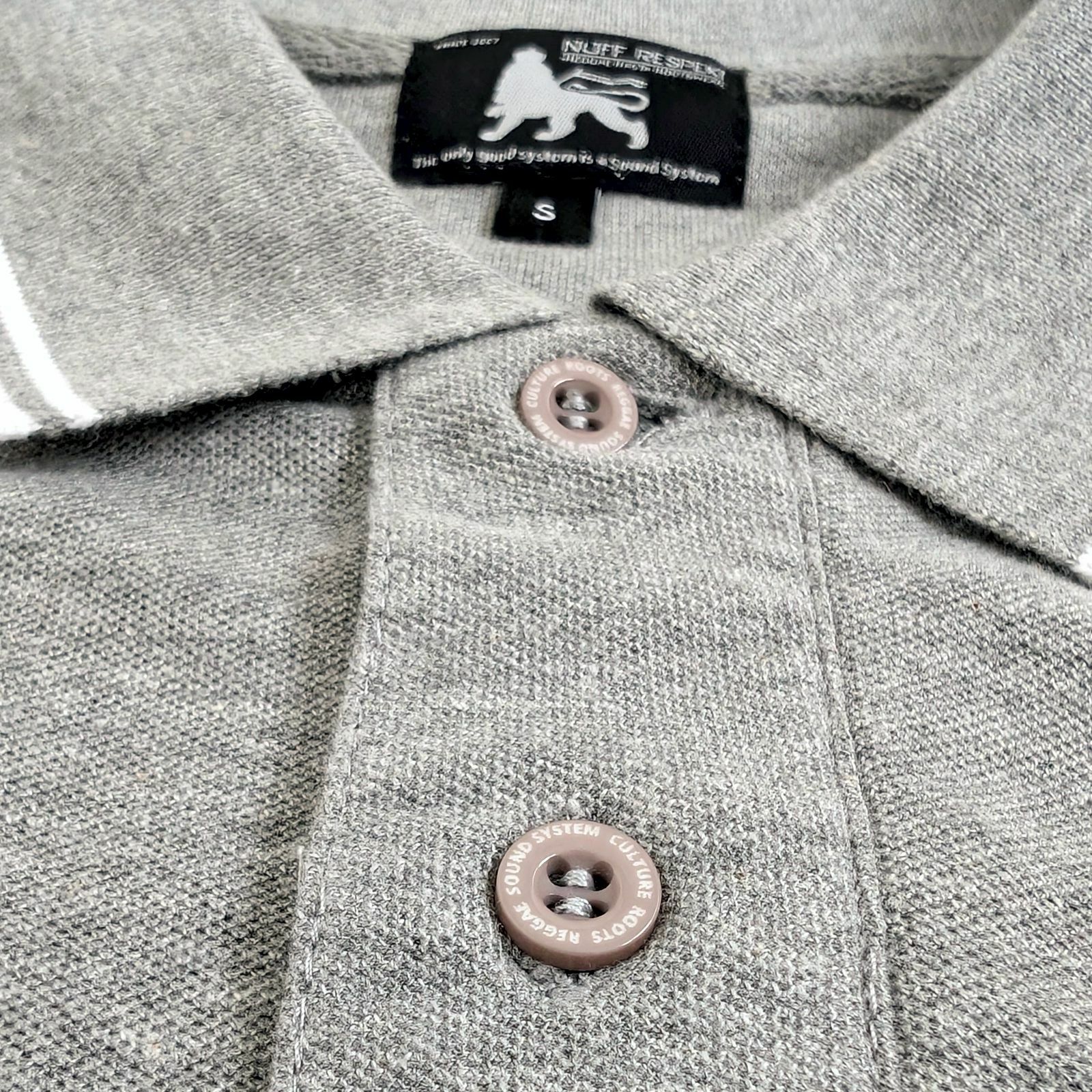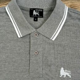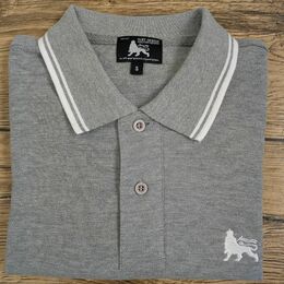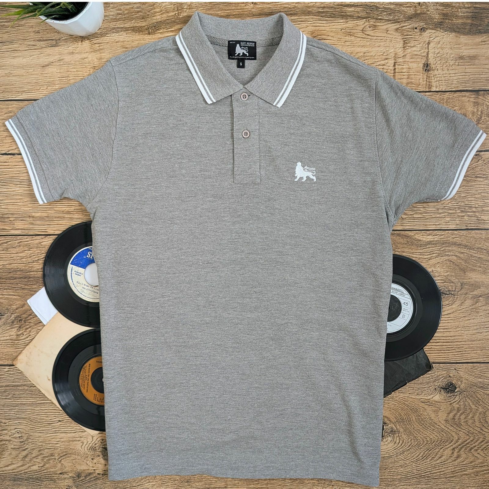 Elegantné polo tričko v decentnej sivej farbe s jamajským duchom a symbolom Leva Judy – dokonalá kombinácia kvality, štýlu a pohodlia.